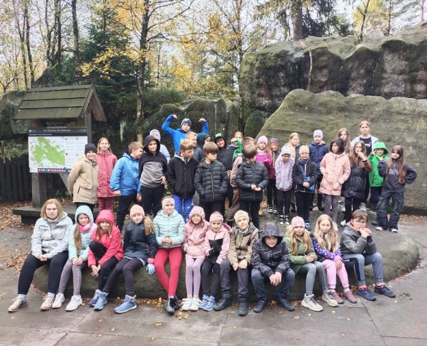 Kolejnego dnia po pożywnym śniadaniu zbieraliśmy siły na kolejny spacer, tym razem na świeżym powietrzu, po Błędnych Skałach. Niektóre z nich swoim kształtem pobudzały wyobraźnię uczestników. Trasa zachwycała swoim naturalnym pięknem, ale też wymagała od uczniów sprawności i gibkości. Ostatnim punktem naszej wycieczki były warsztaty w Muzeum Papiernictwa w Dusznikach -Zdroju. Satysfakcja z własnoręcznie wykonanego papieru była tym większa, że uczniowie mogli zabrać go ze sobą na pamiątkę.